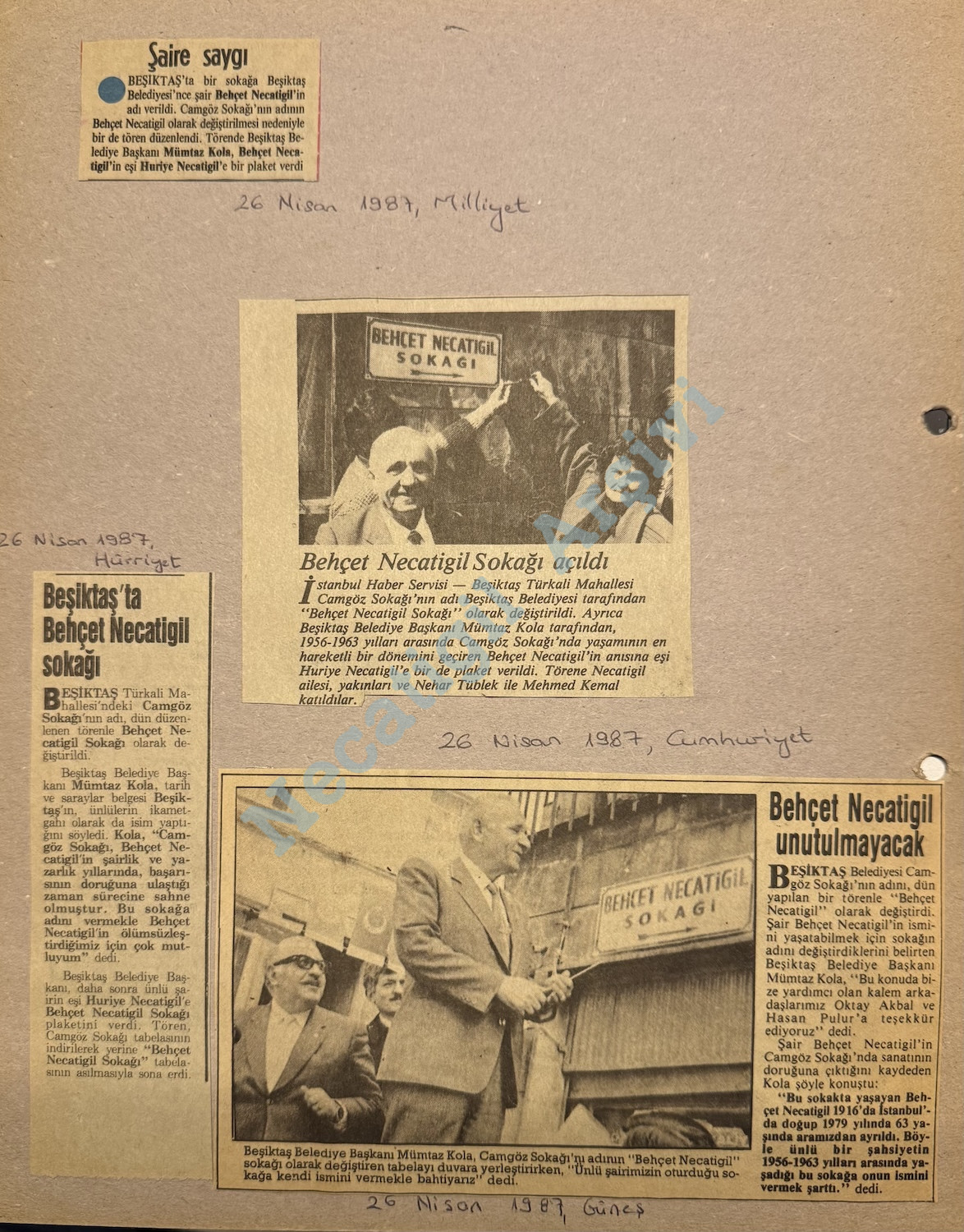 Behçet Necatigil sokağı açılış gününden kupürler