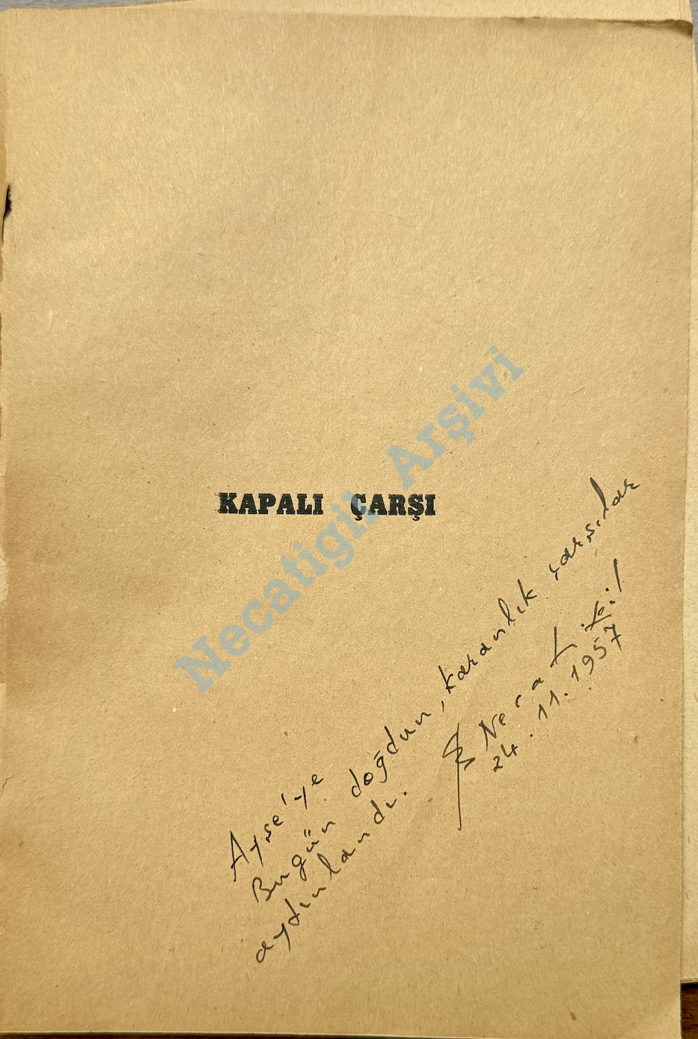 Kızı Ayşe’ye imzalı Kapalıçarşı, Marmara Kitabevi, 1945