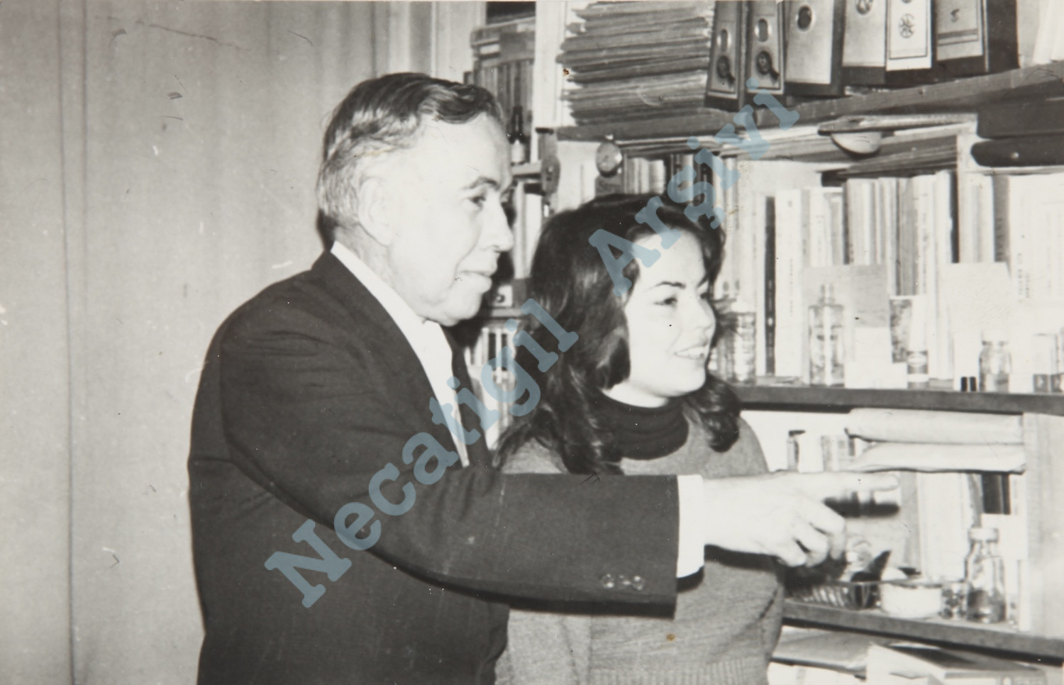 Çalışma odasında kızı Selma’yla, 70’li yıllar