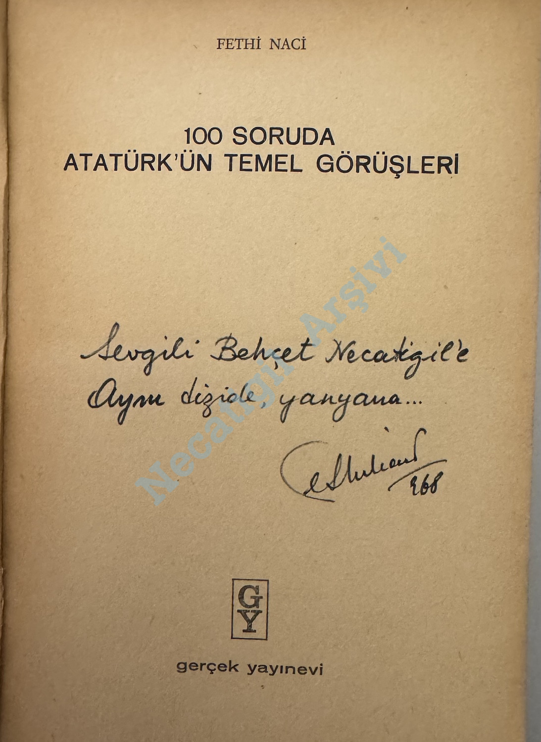 Fethi Naci’den Necatigil’e imzalı 100 Soruda Atatürk’ün Temel Görüşleri, Gerçek Yayınları, 1968