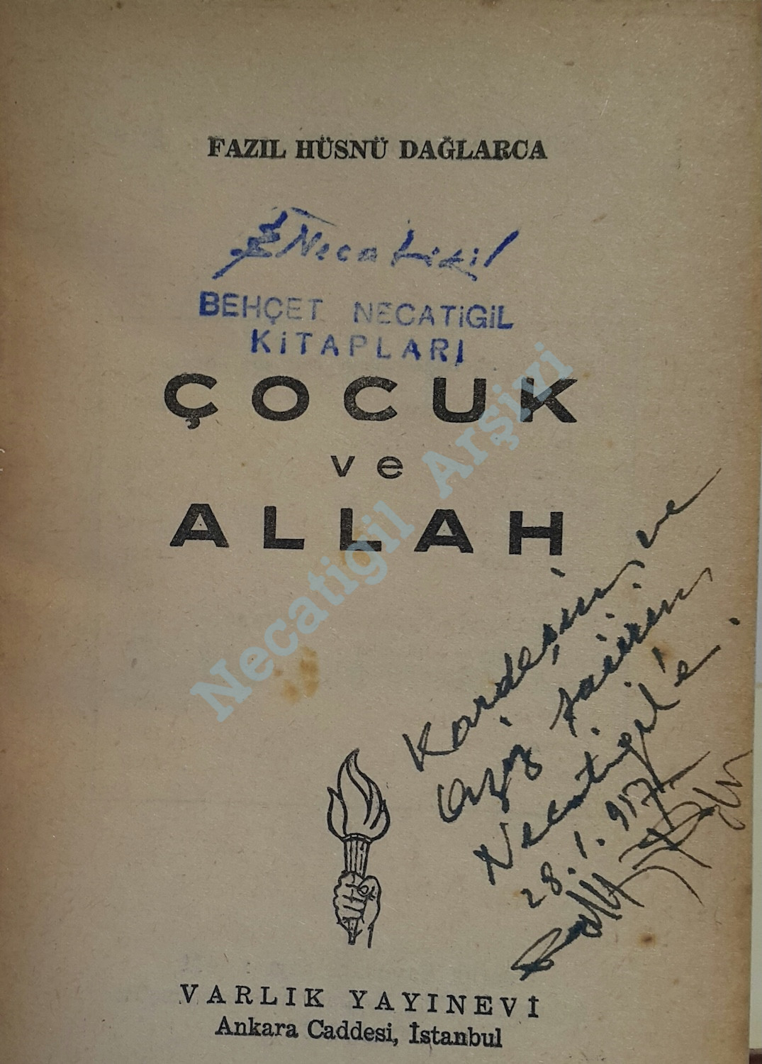 Fazıl Hüsnü Dağlarca’dan Necatigil’e imzalı Çocuk ve Allah, Varlık Yayınları, 1957