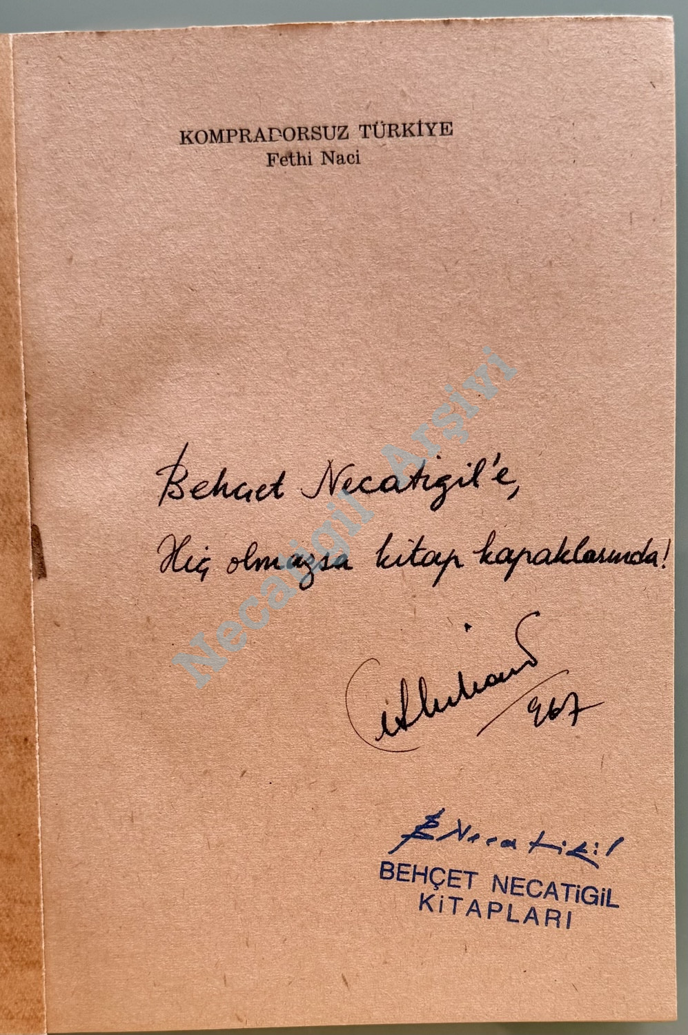 Fethi Naci’den Necatigil’e imzalı Kompradorsuz Türkiye, Gerçek Yayınevi, 1967