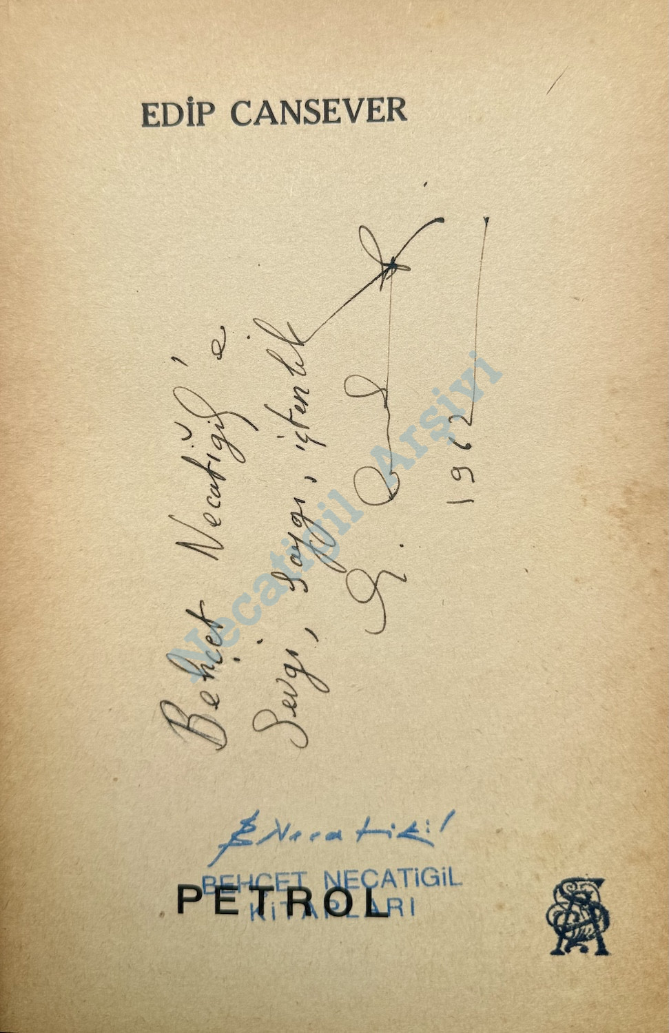 Edip Cansever’den Necatigil’e imzalı Petrol, İstanbul Matbaası, 1959