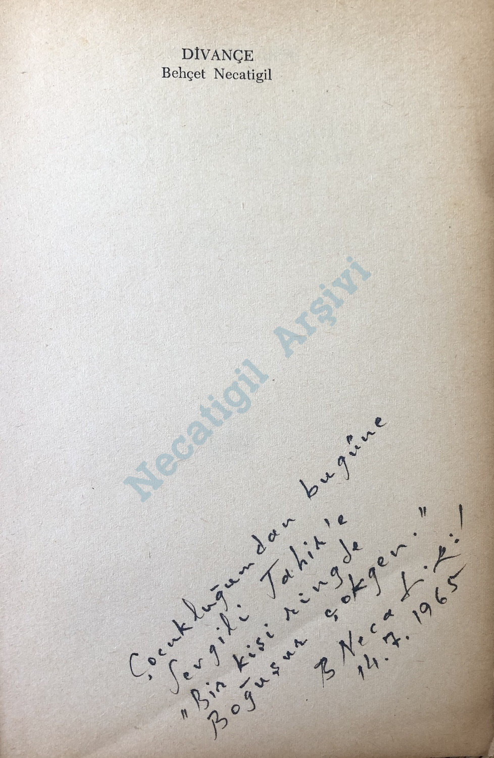 Tahir Alangu’ya imzalı Divançe, de yayınevi, 1965