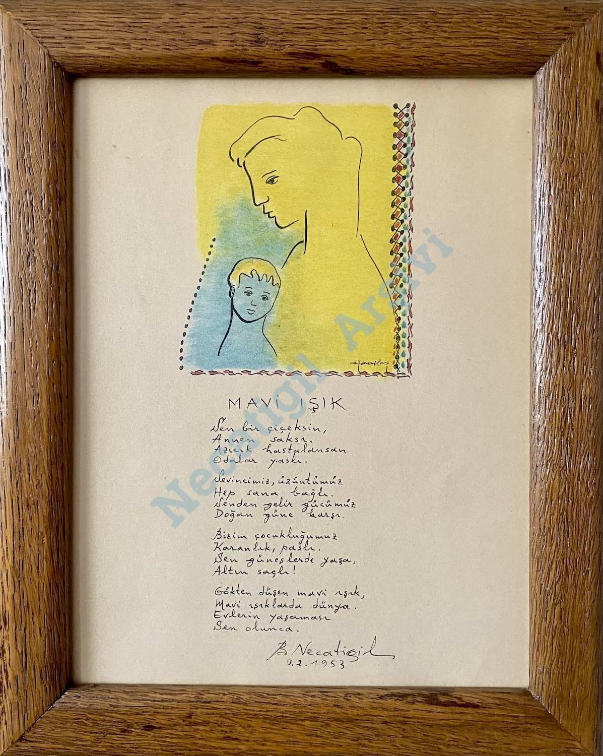 Fethi Karakaş’ın resimlediği Evler şiirleri sergisinden, kızı Selma için yazdığı “Mavi Işık” şiiri