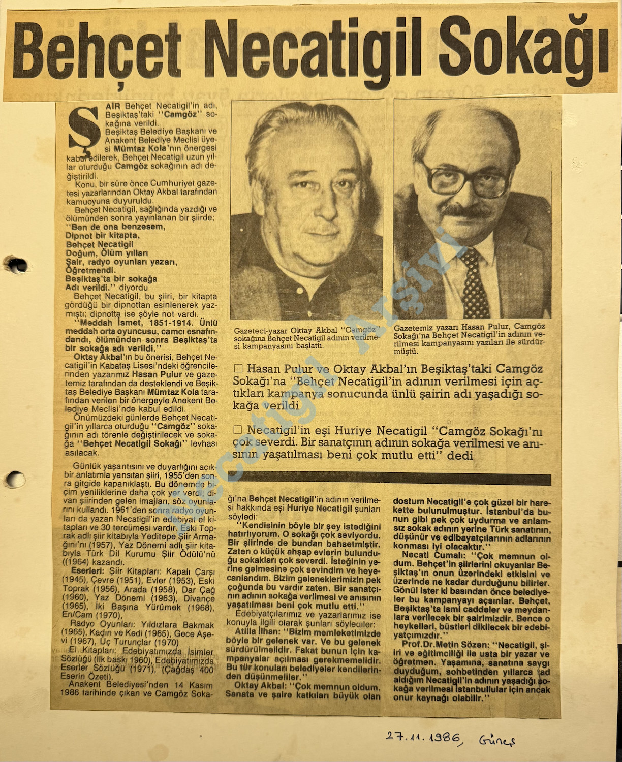 Behçet Necatigil sokağı açılış gününden kupürler