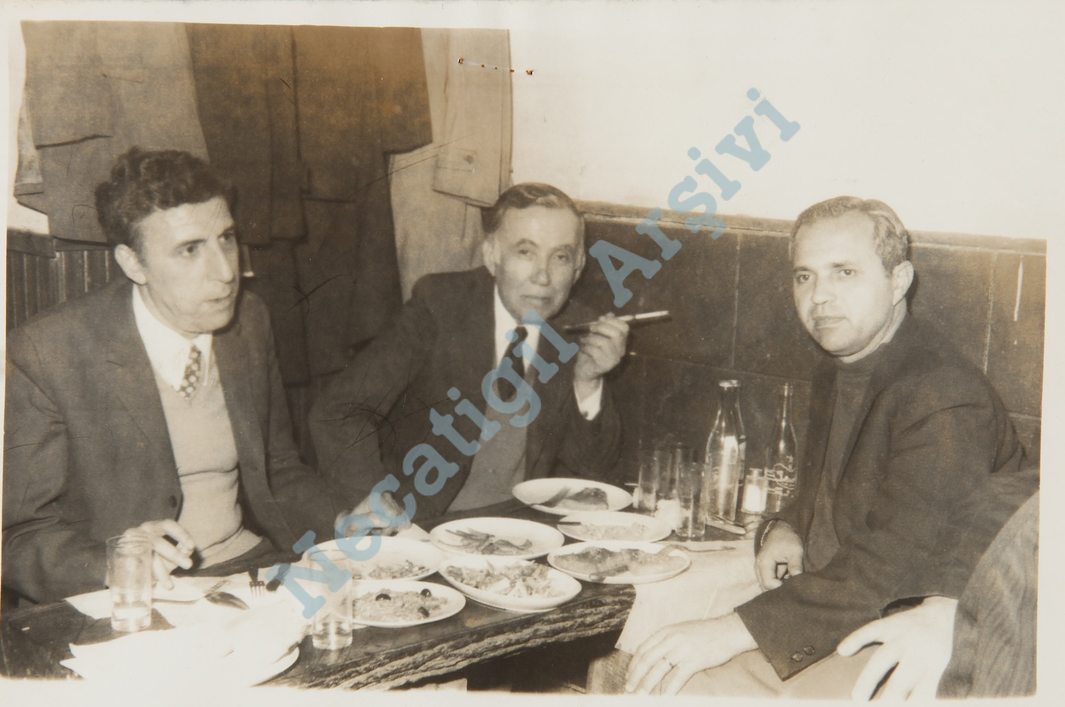 Cumartesi beraberliklerimizden birinde, ilk kez geldiğimiz Havuzlu Bira Pasajı’nda, Galatasaray-Tünel arasında üç eski dost, Ali Tanyeri, Kâmuran Şipal, Behçet Necatigil, 13/14 Kasım 1976 (Fotoğrafın arkasındaki not)
