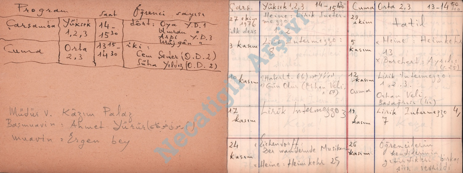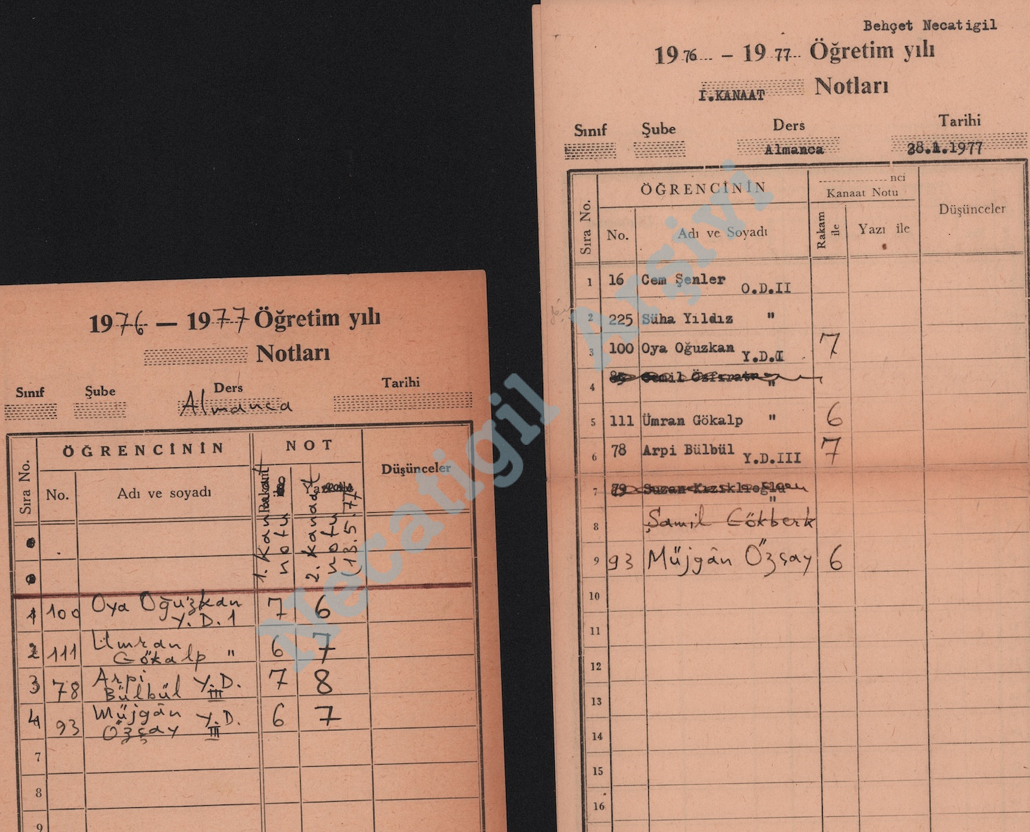 İstanbul Devlet Konservatuvarı 1976-1977 yılı öğrenci notları