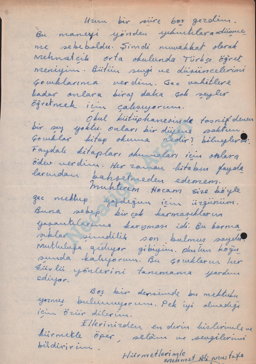 İstanbul Eğitim Enstitüsü (Çapa)’dan bir öğrenci mektubu, Mehmetçik, Kıbrıs, 6 Aralık 1962 (Mehmet Ali Mustafa, öğretmen)