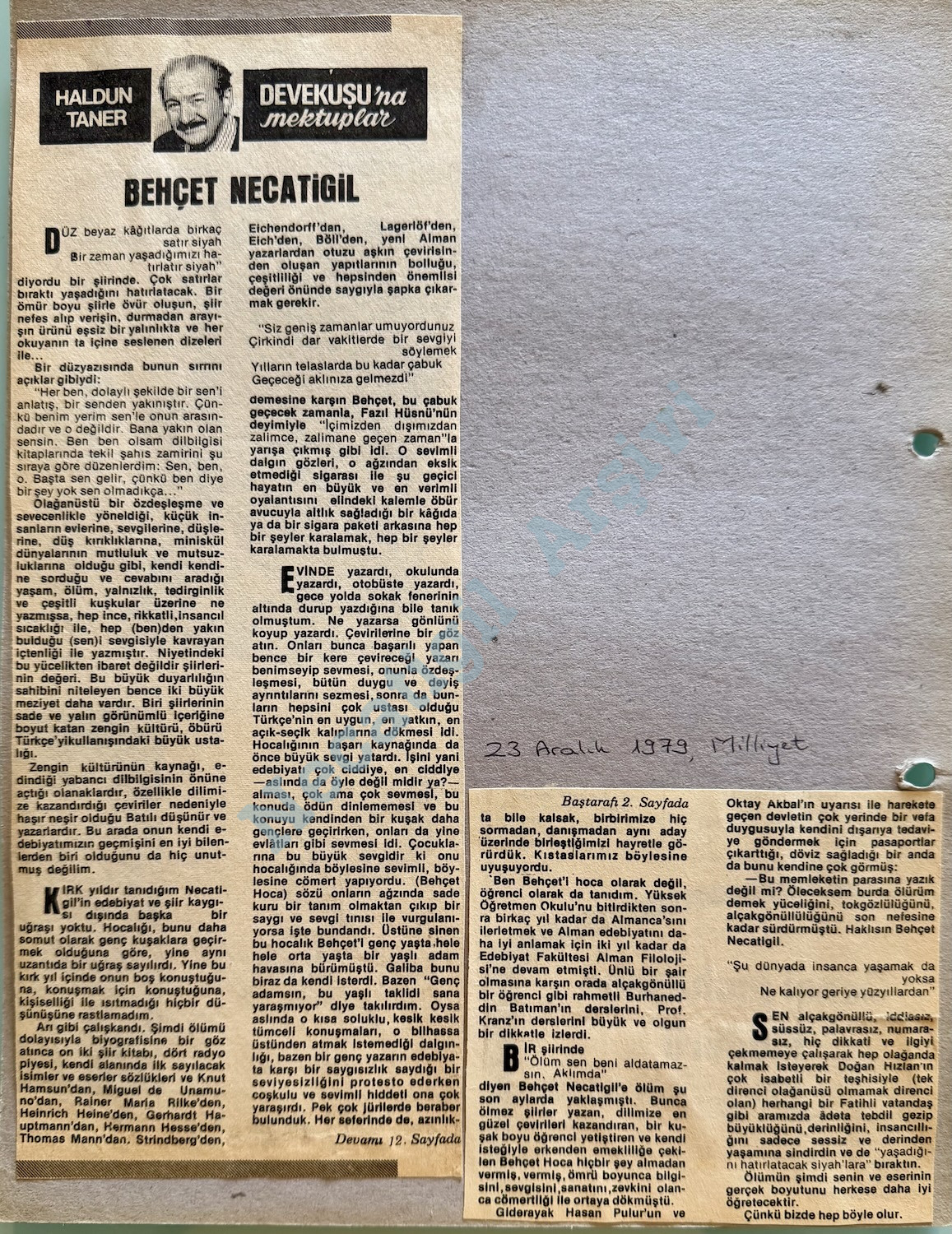 - Ölümünün hemen ardından yazılanlardan