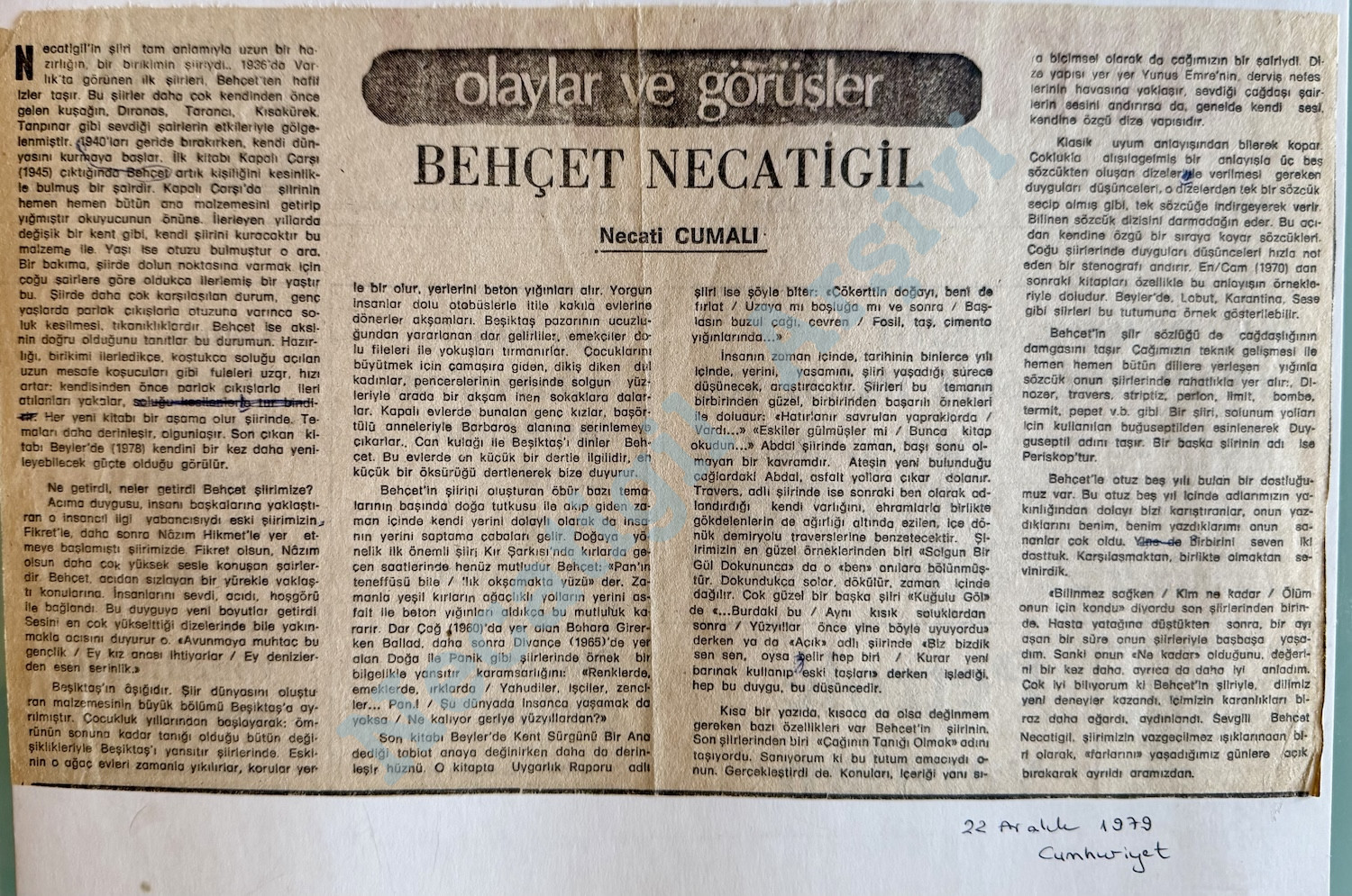 Barlas Küntay, Behçet Necatigil, Beyler, Burhaneddin Batıman, Cerrahpaşa Tıp Fakültesi, Çiçek Pasajı, Cumhuriyet, Doğan Hızlan, Fazıl Hüsnü Dağlarca, Haldun Taner, Hasan Pulur, Hilmi Yavuz, Kabataş Lisesi, Kapalı Çarşı, Kars, Milliyet, Necati Cumalı, Oktay Akbal, Recep Bilginer, Süleyman Demirel, Turgay Gözdereliler, Yüksek Öğretmen Okulu